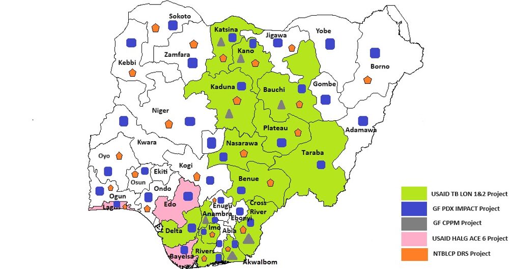 detection, treatment, and notification across 14 states in Nigeria; Bauchi, Kaduna, Katsina, Kano, Nasarawa, Plateau, Taraba, Anambra, Akwa Ibom, Benue, Cross River, Delta, Imo, and Rivers State. The initial award period started in 2020 and lasted until 2025, with an extension from March 2025 to March 2026. The project engages 220 staff, 1008 Adhoc staff, 334 LGAs, and 1,740 private and public health facilities, communities, and civil society to expand