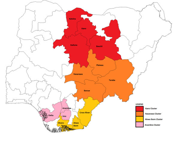 The project is being implemented in three Northern states on the USAID funded KNCV Nigeria TB LON 1 & 2 project namely Kano, Katsina, Bauchi and one Southern State Akwa Ibom. These are high TB burden states with a combination of three or more of the following: large population density, high incidence of under nutrition, high number of nutrition clinics availability of diagnostic facilities, high number of Children on the streets, high TB yield but less than 7% childhood TB, Large number of slums, high number of public schools.