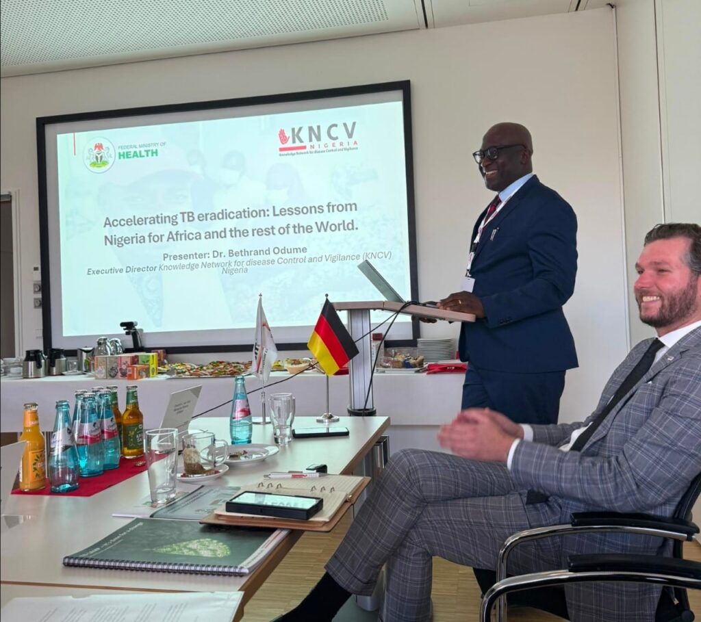 Dr. Odume represented KNCV Nigeria with distinction, sharing the organization’s transformative experience in scaling up TBLAMP technology, a molecular diagnostic tool for tuberculosis detection, across Nigeria. His presentation resonated with African country missions present in Germany, highlighting Nigeria’s leadership in TB innovation and control.